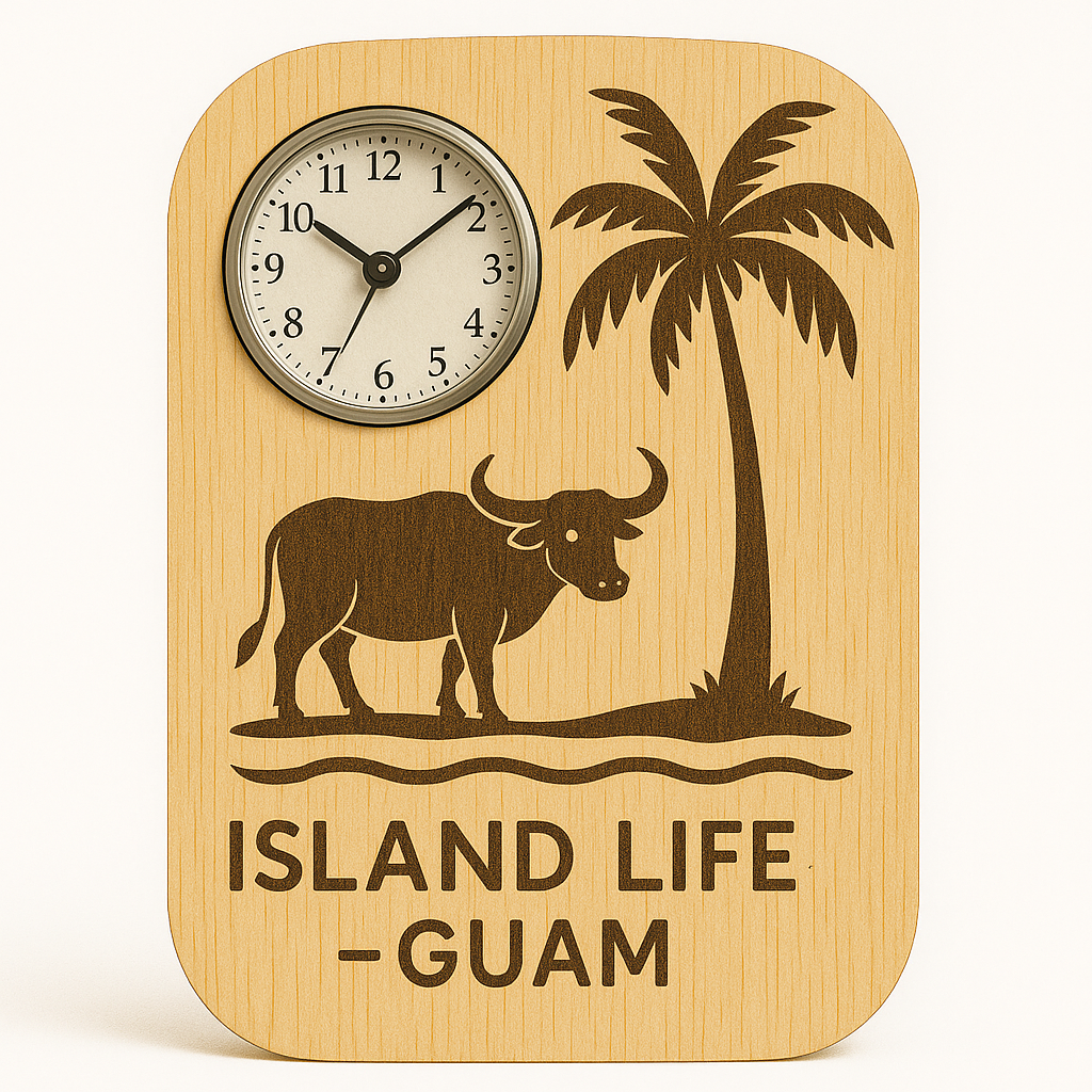 Bring home a piece of Guam’s soul with this beautifully handcrafted island clock, designed to celebrate the spirit, culture, and natural beauty of the Marianas. Each piece blends traditional island inspiration with modern craftsmanship, creating a keepsake that captures the warmth and pride of Chamoru heritage.